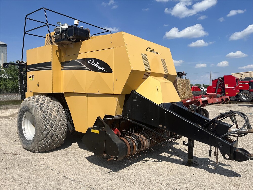 2005 Challenger LB44 large square baler, flat bale chute, knotter fan