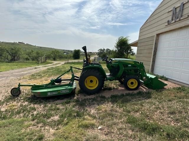 USED 2019 JOHN DEERE 3032E, ONLY 103 HOURS! COMES WITH 300E LOADER/BUCKET, AND FRONTIER RC2060 (60″) SHREDDER! AG TIRES, MFWD. BARN KEPT UNIT LIKE NEW! 2-SPEED HYDROSTAT WITH 540 PTO