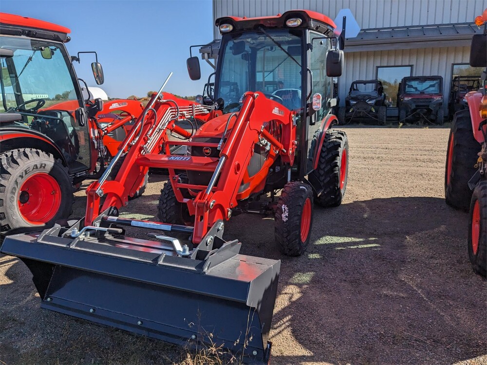NEW 2023 CK2620CHSE WITH FACTORY CAB, HEAT AND A/C. R14 TIRES. KL4030 LOADER PACKAGE WITH QUIKTACH BUCKET.