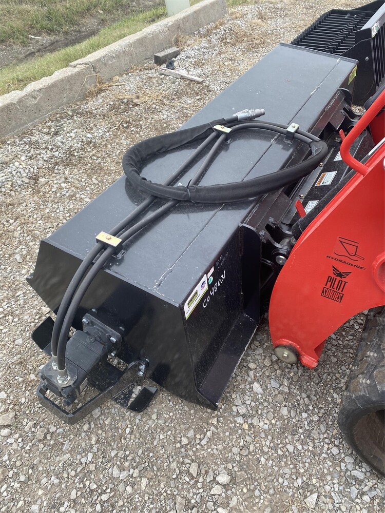 New Prime Attachments 72″ Tiller. Four swing away blades per spindle, Bidirectional motor / Bidirectional tine rotation, Standard hydraulic flow (15-24 gpm). universal quick attach plate
