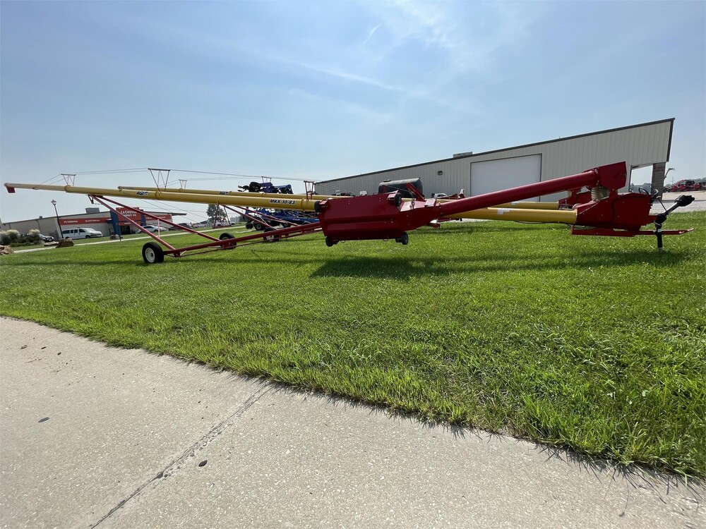 The MKX Series uses square, one-bolt flight connections to ensure the flighting maintains proper alignment for smooth operation. The upper flight thrust adjuster equalizes the pressure between the upper and lower bearings during operation. This extends the life of the lower boot bearing. The CV PTO reduces vibration and provides maximum power transfer to the auger in order to maintain the life of the unit without sacrificing capacity. The large boot and tapered boot flight maximizes auger capacity at all angles by efficiently channeling grain from the hopper into the auger. Easy to Service & Maintain The removable slip-on boot flight uses Wear Edge Technologyâ„¢ and can be quickly replaced without having to remove and replace the entire lower flight. The MKX Series features six easily accessible service points to allow for quick maintenance of u-joints, chains, bearings, and gearboxes. The u-joint end caps have external grease zerks, making it easy to service and maintain. Tool-free inspection areas include, the hopper chain cover, neck transition, boot clean-out and swing head cover. The large clean-out, service points, and access panels allow for fast and efficient auger cleaning and servicing the auger