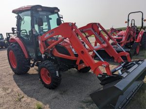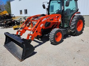 NICE! Used DK4710 Kioti cab tractor with loader. HVAC cab, loaded with options. Contact Colin today for complete details.