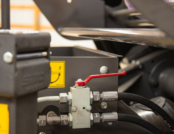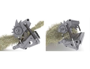 Should a major blockage occur, stage two of hydroflexcontrol is activated by the operator, and is cleared by lowering the rear of the feed table floor hydraulically from the cab, allowing for material to easily pass through, therefore minimizing downtime.