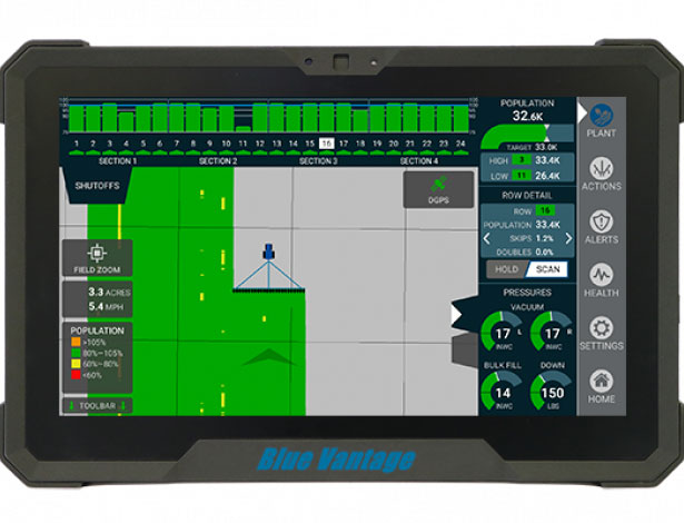 - Simple planter operation with the Blue Vantage display controlling all transport, planting, fertilizer, camera, and data functions