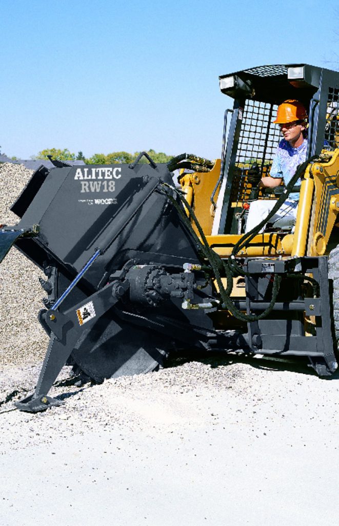 Alitec Rock Wheels replace higher priced concrete cutting machines. Quick attach mounting allows you to mount to all skid steers with high-flow hydraulics. Planetary reduction generates higher torque than competitors’ drive line packages – up to 4,800 lbs-ft. Wheel speed at 30 gpm is 77 rpm. Choose between dual-circuit and single-circuit auxiliary hydraulics.