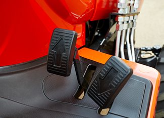 Twin HST pedals offer easy forward and reverse movement with smooth engagement, acceleration and deceleration. Pedal pressure is minimized which reduces operator fatigue during long hours of use.