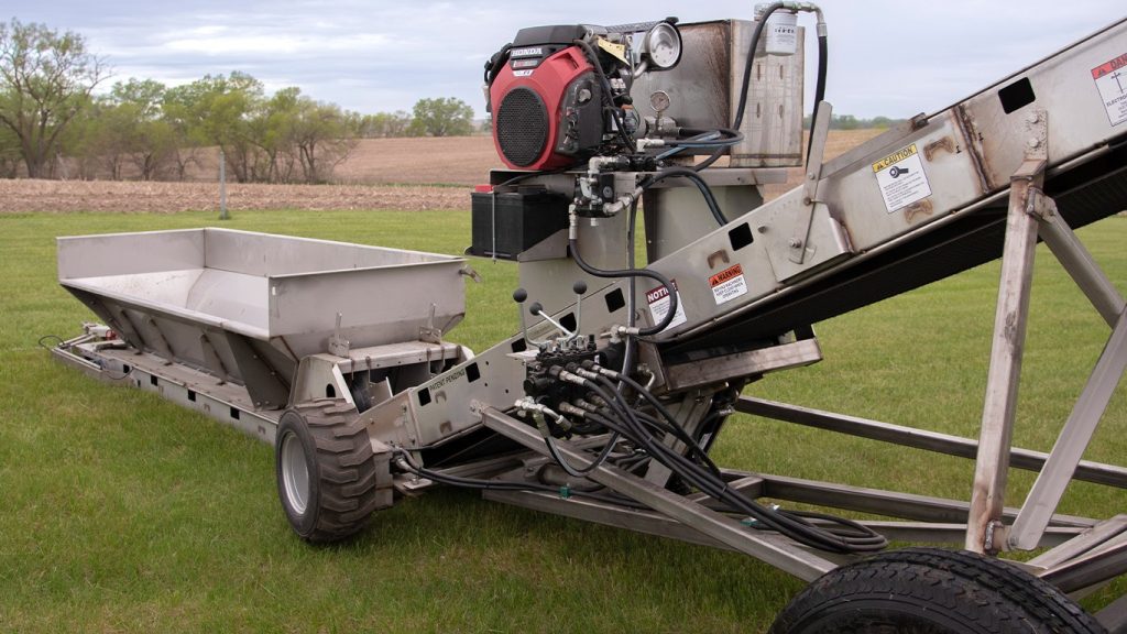 Easily switch between handling fertilizer and lime with the FLX1224 Field Loader from Brehmer Mfg. Designed with versatility in mind, the removable lime hopper quickly converts to allow low-profile loading of dry fertilizer. Constructed from durable 304 stainless steel, the FLX1224 is built for long-lasting performance and comes equipped with Brehmer’s patented self-aligning belt system, which automatically keeps the conveyor belt centered during operation.