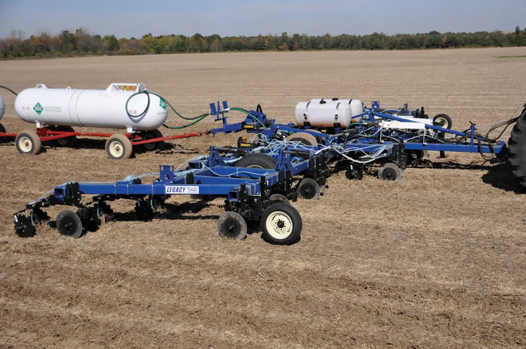 Upgrade to a higher class of efficiency!  The Legacy anhydrous ammonia fertilizer applicator allows you to cover more acres and more miles without the worry of down time.  Featuring a toolbar that is available in 52.5′ to 30′ widths with 20″ or 30″ row spacing depending on model, the Legacy is a workhorse fertilizer applicator that features a profit-enhancing design packed full of features.