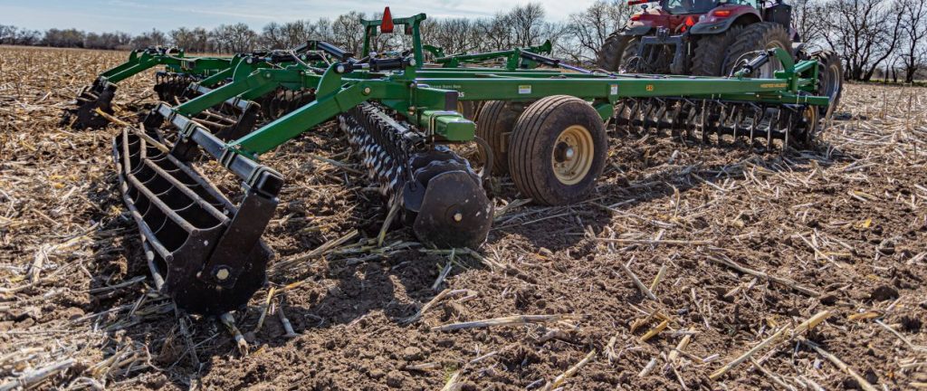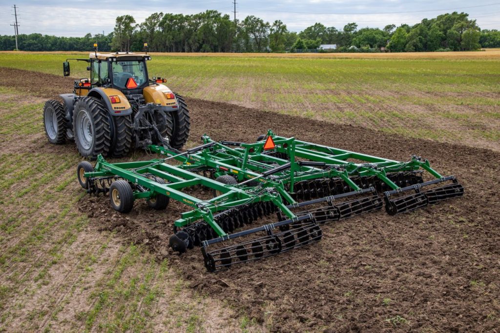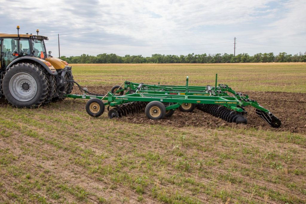 Engineered to run at faster speeds than a conventional disk harrow, the Velocity out-cuts and out-finishes competitive low-concavity, high-speed disks that are often classified as vertical tillage implements. Hydraulic fore/aft leveling simplifies field adjustments to create a smooth finish in a variety of soil conditions. The hydraulic soil conditioner features heavy-duty 16″ diameter reels with 1″ rods that bust up clods for a well-prepared seedbed. Velocity is offered in six sizes, in working widths from 22′ 11″ to 36′ 2″.