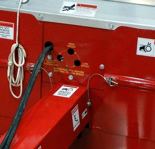 • The strong oil bath bevel gear box that powers the beater is tapered Timken roller bearing equipped. The gear box utilizes a 4-jaw beater shut off clutch and tractor sized spline shaft.