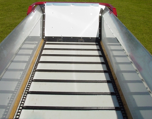 • Sides, front panel and both sides of the rear hydraulic end gate use fiberglass reinforced plywood to provide for easy cleaning and minimal freeze up. It also features a solid virgin grade poly floor. Considerably less torque is needed to move a heavy load.