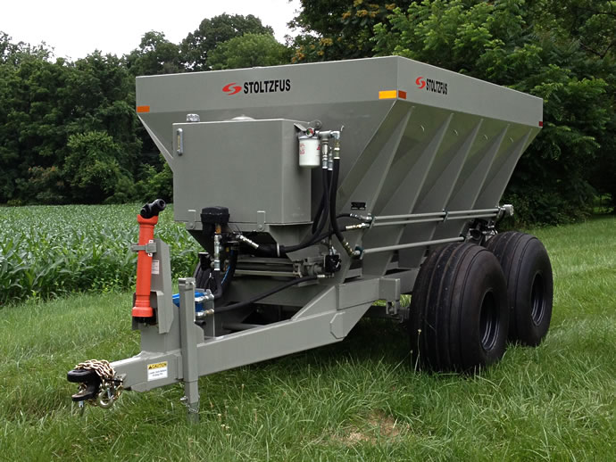 For farmers who are dissatisfied with light duty spreaders, the Wet Lime Spreader is a machine that is built for spreading wet or damp agricultural lime. Unlike a fertilizer spreader, the Wet Lime Spreader has a 24 inch wide conveyor and steep, 53 degree side slopes and a 4” drop pan to prevent material bridging in the hopper.