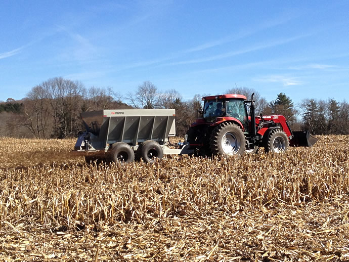 The Wet Lime Spreader (WLS) is designed to pay for itself based on the difference between custom applied lime and spreading it yourself. Farmers typically back-haul lime from the quarry and dump it in the corner of a field for spreading at a later date. The lime does not need to be kept dry, and can sit for months until needed. The lime can then be spread when conditions are right instead of waiting in line for the custom applicator to come around.